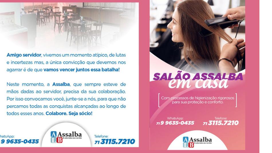 A Associação dos Servidores da Assembleia Legislativa da Bahia (Assalba) tem buscado a manutenção de serviços e atendimentos para o associado durante este período de quarentena decorrente da pandemia do coronavírus. De acordo com o presidente da associação, Nilton Viana, serviços como o salão de beleza e o restaurante do Clube ...