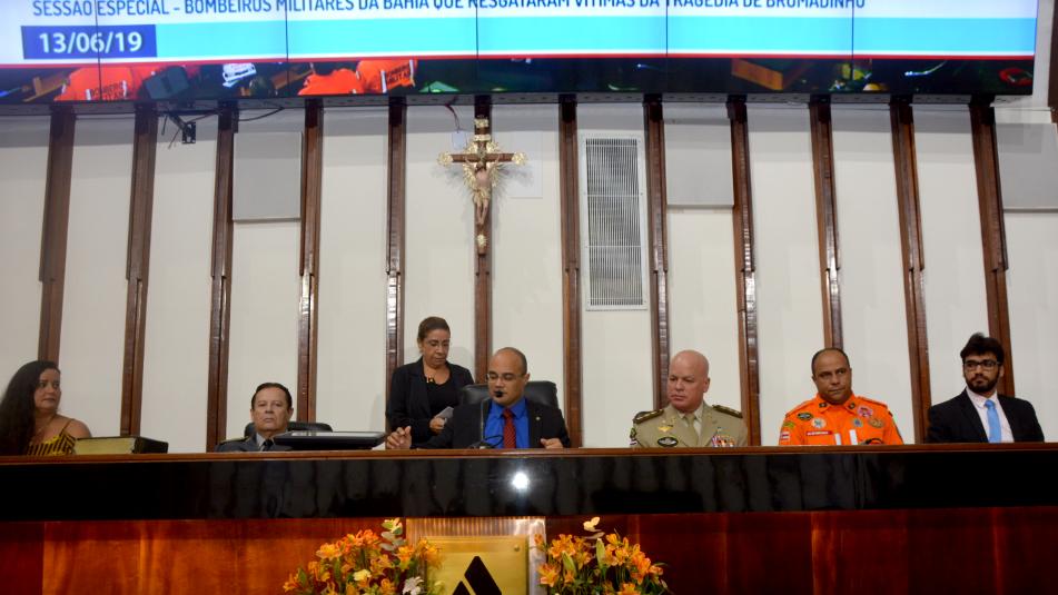 Os bombeiros militares da Bahia que atuaram no resgate de vítimas da tragédia de Brumadinho, em Minas Gerais, foram homenageados na Assembleia Legislativa (ALBA) na tarde desta quinta-feira (13), em uma sessão especial proposta pelo deputado Capitão Alden (PSL). Integraram a mesa do evento presidida pelo deputado Capitão Alden as ...