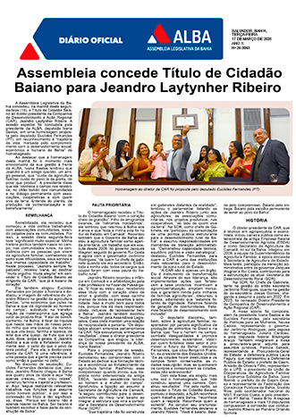 Assembleia concede Título de Cidadão Baiano para Jeandro Laytynher Ribeiro