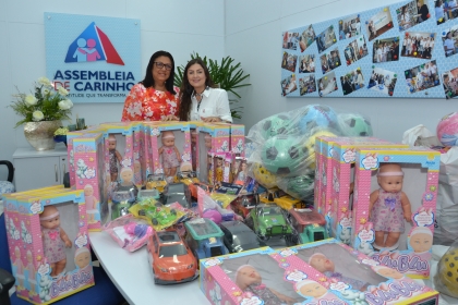 Deputa Angela Sousa entrega brinquedos a Eleusa Coronel, para doação na Assembleia de Carinho