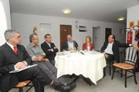 Antes de iniciar os trabalhos da primeira edição do programa Assembleia Itinerante, que começou suas atividades pelo município de Feira de Santana, o presidente da AL, deputado Marcelo Nilo (PDT), juntamente com os deputados Zé Neto (PT), Graça Pimenta (PR), Carlos Geilson (PTN), Targino Machado (PSC) e o Pastor José de Arimatéia (PRB) concederam entrevista coletiva para representantes da imprensa local, em um hotel da cidade.