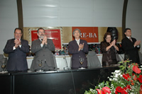 O presidente da Assembleia Legislativa, deputado Marcelo Nilo (PDT), participou ontem da solenidade de comemoração de 80 anos do Tribunal Regional Eleitoral (TRE), realizada no auditório do Tribunal. O evento, que foi aberto e conduzido pela presidente da Corte, desembargadora Sara Silva de Brito, contou com a presença de autoridades civis, militares e eclesiásticas. Na oportunidade, foi lançado o livro “TRE-BA: 80 anos elegendo o futuro” e também um selo e carimbo comemorativos, personalizados para a instituição. A cerimônia foi encerrada com a apresentação do quarteto de trombones da Orquestra Neojibá.