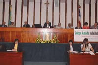 À sessão especial de ontem participaram estudantes, literatos, escritores e autoridades. Compuseram a mesa dos trabalhos os deputados Álvaro Gomes, proponente da homenagem, e Marcelo Nilo; o cantor Gerônimo, Mãe Stella de Oxóssi; Rômulo Cravo, representando o Governo do Estado; o cineasta Guido Araújo; o tenente-coronel Josapha Souza;o ex-governador Waldir Pires; João Jorge Amado, representando a família, e a professora Bohumila Araújo, estudiosa da obra do escritor.