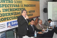 O inédito "Encontro sobre perspectivas de parcerias para incremento e modernização do setor agropecuário da Bahia" aconteceu no Hotel Catussaba Resort durante todo o dia de ontem e o 2º vice-presidente da Assembleia Legislativa, deputado Aderbal Caldas (PP), representou o presidente Marcelo Nilo (PDT). Além dele, marcaram presença o líder do governo na AL, deputado Zé Neto (PT); Euclides Fernandes (PDT); os deputados do PSD Cláudia Oliveira, Carlos Ubaldino, Maria Luiza e Temóteo Brito, que preside a Comissão de Direitos Humanos e Segurança Pública da AL; os comunistas Fabrício Falcão e Álvaro Gomes, 3º Secretário da AL; Coronel Gilberto Santana(PTN), que preside a comissão do Porto Sul ; Luiz Augusto (PP), que preside a Comissão de Agricultura e Política Rural da AL, e os petistas Marcelino Galo, Neuza Cadore, Joseildo Ramos, Rosemberg Pinto, e o deputado Yulo Oiticica, líder do PT na Assembleia, dentre outras autoridades.