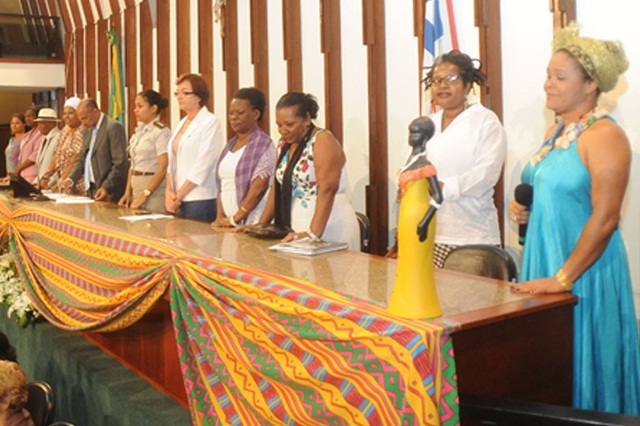 O que a atriz global Neuza Borges, a prefeita de Governador Mangabeira Domingas Souza, a bispa evangélica Valdirene Francisca, a ialorixá Mãe Carmem e a capitã da Polícia Militar Bruna Gracielle têm em comum? Em poucas palavras: são guerreiras que venceram e atualmente são exemplos para as mulheres negras que ainda lutam contra o preconceito de raça e gênero para ocupar os seus espaços na sociedade brasileira. Todas elas participaram da sessão especial “Mulher Negra e Caribenha” realizada, na manhã de ontem, no plenário da Assembleia Legislativa da Bahia. No evento, promovido pelo deputado Bira Corôa (PT), as mulheres negras baianas que se destacaram na sua área de atuação ou na defesa da promoção da igualdade foram agraciadas com o Troféu Pérola Negra Benedita da Silva – uma placa honorífica que leva o nome da atual deputada federal e ex-governadora do Rio de Janeiro. Por estar no Congresso Nacional, Benedita da Silva (PT/RJ) não pôde participar da sessão especial de ontem, mas ela foi representada pelo marido, o ator Antonio Pitanga. “Este troféu é um reconhecimento simbólico à primeira mulher negra a ser vereadora do Rio, a primeira a sentar numa cadeira no Senado, a assumir o governo de um estado, ministra do governo Lula. E, mais do que tudo isso, uma mulher que, mesmo sendo alfabetizada muito tarde, descobriu muito cedo que é possível acreditar nos sonhos, lutar por eles e realizá-los”, explicou Bira, que na Assembleia Legislativa preside a Comissão de Promoção da Igualdade.