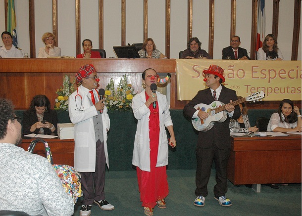 A parlamentar fez um breve histórico, citando o filósofo Herbert Spencer, segundo o qual "rir é um mecanismo essencial para se estabelecer conforto físico e equilíbrio biológico". Ela ainda lembrou de Pat Adams, médico americano que inovou ao utilizar o nariz de palhaço como utensílio terapêutico, até chegar aos Terapeutas do Riso.