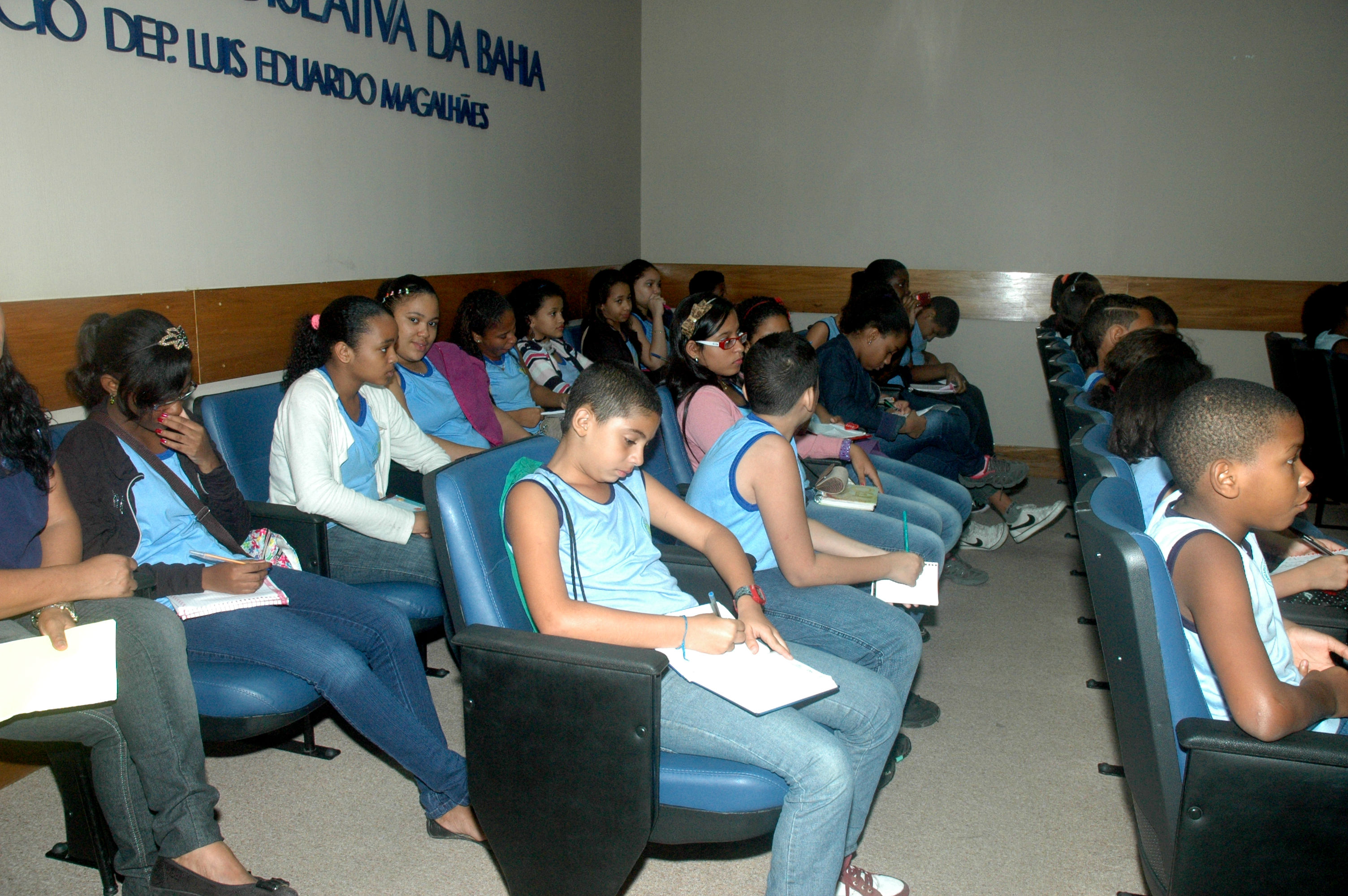 Na manhã de ontem, a Assembleia Legislativa recebeu a visita de mais uma instituição de ensino. Cerca de 50 alunos do Educandário Dermeval José Sales Matos teve a oportunidade de conhecer a estrutura física e organizacional da Assembleia, através do programa A Escola e o Legislativo e da Rede Jovens do Nordeste. Em depoimento a aluna Amanda Souza, 10 anos, disse: “É um ótimo espaço, adorei conhecer sobre os deputados e sobre as obras de Carybé”.