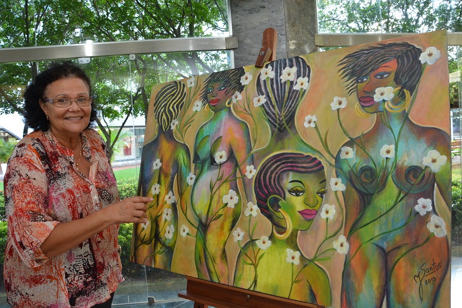 “O artista precisa de espaços como a Assembleia Legislativa, o Fórum e lugares públicos que têm muita circulação para o reconhecimento da arte”, explica Tereza, que também é artista plástica e já se apresentou no Legislativo. Com 10 obras, a exposição destaca a pintura de mulheres despidas e floridas da pintora Jacira Santos. “Para mim, mulher tem toda graça. As minhas mulheres estão misturadas com as flores, porque mulher e flor se confundem, eu acho, e nuas porque é o olhar do mundo sobre a mulher. Nua porque seus conceitos e anseios ainda não foram totalmente conquistados. A mulher está nua diante do mundo”, diz a artista e professora aposentada que já pinta há 7 anos, além de muitas exposições entre Salvador, São Paulo e Casa de Portugal.