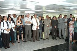 O presidente, deputados, diretores e servidores aplaudem as apresentações no saguão Josaphat Marinho...