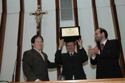 A Assembléia Legislativa viveu ontem um dia de festa, com o plenário lotado para a concessão solene do título de Cidadão Baiano a Umberto Costa, diretor executivo da Companhia de Desenvolvimento e Ação Regional (CAR), proposto pelo líder do PFL na Casa, deputado Gildásio Penedo, que teve aprovação unânime. Conduzido ao plenário por uma comissão suprapartidária instituída pelo presidente Clóvis Ferraz(PFL), ele foi aplaudido de pé ao adentrar na sala das sessões e demonstrou estar emocionado com a homenagem que recebia do Legislativo estadual, antes mesmo de ocupar seu lugar na mesa de honra dos trabalhos, ao cumprimentar os secretários de estado e as demais autoridades presentes.