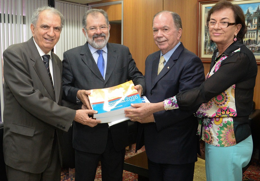 O Projeto de Lei Orçamentária Anual do Estado (LOA) para o exercício de 2016 foi entregue ontem pelo secretário do Planejamento, João Leão, ao presidente da Assembleia Legislativa, Marcelo Nilo, em um encontro realizado no gabinete da Presidência. O projeto, imediatamente enviado por Nilo para ser protocolado e iniciar tramitação, agora segue para apresentação de emendas, apreciação das comissões de Constituição e Justiça e de Finanças, Orçamento, Fiscalização e Controle. A fase final é a aprovação pelo plenário.