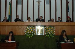 Compuseram a mesa dos trabalhos, além de Ferraz - que cedeu a presidência da sessão a Pedrosa logo após a fala dela -, os deputados Jurandy Oliveira e Eliel Santana (PSC), José Eduardo, o gerente regional da LBV, Valdemir Ferreira, a gerente administrativa, Sônia Campos, e Germano Machado, do Círculo de Estudo Permanente e Ação.