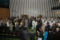 O plenário recepciona com aplausos e de pé o vice-almirante Álvaro Luiz Pinto (com Paulo Souto)...