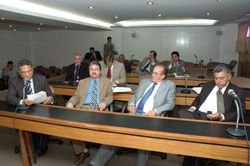 Ao lado de Aderbal, Luiz de Deus e Gerson (na frente), Paulo Câmera apresenta seu parecer, aprovado em segundo turno