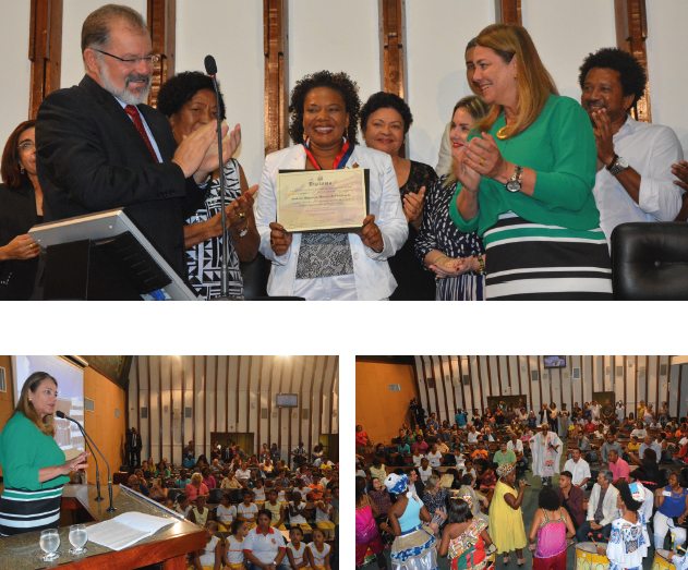 A solenidade, conduzida pelo presidente Marcelo Nilo, contou com a presença da família da homenageada, lideranças do movimento social e artistas baianos, além de jovens beneficiados pela Fábrica Cultural.