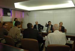 Nelson Brandão, Zé das Virgens e Lisa Weckerle na mesa durante a audiência da Comissão de Desenvolvimento Econômico