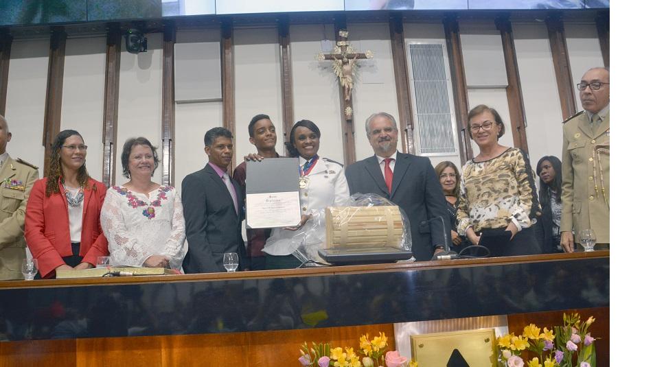 Marcelino Galo afirmou que a Comissão de Direitos Humanos e Segurança Pública, colegiado que preside na ALBA, sempre teve a preocupação de criar uma aproximação com a Polícia Militar. “Alguns oportunistas, que usam a mídia apenas para ganhar dinheiro, insistem em apontar uma dicotomia entre a Polícia Militar e os Direitos Humanos. Por conta disso, essa solenidade tem um significado que vai além da homenagem, temos uma policial nos ensinando a fazer a luta pelos direitos humanos”, disse o deputado, salientando que o país vive um momento difícil e a violência deve se acirrar. “A elite de forma criminosa está prejudicando o Brasil como na promulgação da ‘PEC da Morte’ que congela recursos que seriam usados na área social para transferir para os rentistas acirrando a desigualdade social e consequentemente a violência”, completou o deputado.
