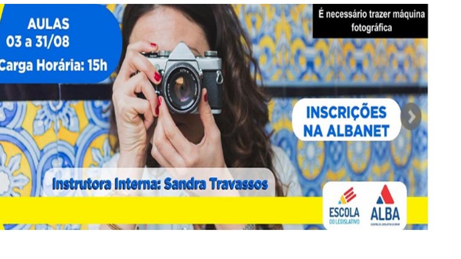 Estão abertas as inscrições para a oficina de fotografia direcionada aos dependentes dos servidores da ALBA. Esta ação, é mais uma iniciativa das Escola do Legislativo, através do Programa Reciclalba. O curso será realizado todas as sextas-feiras das 9h às 12h, a partir do dia 3 de Agosto, e terá carga horária de 15h, com certificado ao final do curso.