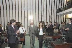 O autor da iniciativa lembrou que o homenageado é neto e filho de oftalmologistas. "Corre em suas veias as células herdadas de seus precursores", assinala o deputado, acrescentando que também chama a atenção na carreira de Rubens Belfort um certo componente político. "Ao entrar na faculdade, no ano de 1966, foi obrigado a viver o tempo de exceção e do arbítrio. Chegou a ser preso por participar de um congresso da UNE", relatou Vespasiano, arrematando seu pronunciamento de saudação ao médico da seguinte forma: "Rubens, você é nosso querido irmão, nascido hoje, cujo berço, neste momento, é a Assembléia Legislativa da Bahia, que também serviu de cartório, para registrá-lo por meio do projeto que aprovou o seu nascimento como baiano."