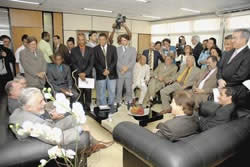 O encontro com os deputados na presidência durou cerca de 40 minutos. Na saída, o futuro governador foi bastante cumprimentado pelos funcionários da AL. Participaram também da reunião os futuros secretários da Educação, Adeum Sauer, da Agricultura, Geraldo Simões, do Desenvolvimento Social e Combate à Pobreza, deputado Valmir Assunção (PT), e do Desenvolvimento e Integração Regional, deputado Edmon Lucas (PTB).