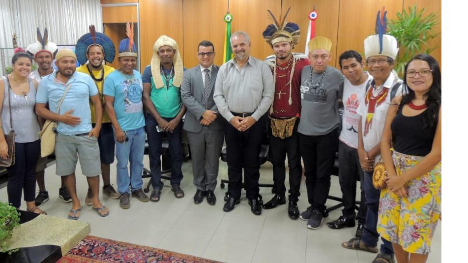 Lideranças indígenas dos povos Pataxó Hã-Hã-Hãe, Tumbalalá, Payayá e Tupinambá estiveram em audiência, nesta terça-feira (26), com o presidente em exercício da Assembleia Legislativa, deputado Alex Lima (PSB), para tratar do 3º Acampamento Estadual dos Povos Indígenas da Bahia, previsto para acontecer entre os dias 7 e 10 de maio no Centro Administrativo. A reunião foi mediada pelo deputado estadual Marcelino Galo (PT). De acordo com Kâhu Pataxó, coordenador geral do Movimento Unido dos Povos e Organizações Indígenas da Bahia, a ação pretende reunir entre 500 e 600 indígenas de 24 povos de todo Estado, cobrar a demarcação de terras, reivindicar investimentos em educação indígena, a implementação da carreira do professor indígena e reclamar a preservação e efetivação de seus direitos. Na Bahia, aproximadamente, há 22 terras indígenas em processo de demarcação.