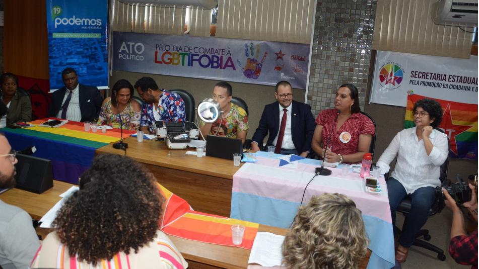 Um ato político suprapartidário pelo Dia do Combate à LGBTIfobia foi realizado, na tarde desta quinta-feira (16), na Assembleia Legislativa. Organizado pelo Movimento LGBTI na Bahia, com o apoio dos mandatos dos deputados Jacó Lula da Silva (PT), Olívia Santana (PC do B), Hilton Coelho (Psol) e Fabíola Mansur (PSB), o evento reuniu, além de associações e grupos de defesa da comunidade LGBTI, entidades e movimentos negros da Bahia e gestores estaduais.