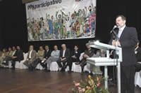 O presidente da Assembléia Legislativa, deputado Marcelo Nilo, participou, em Feira de Santana, do ato de uma reunião prévia para a preparação do Plano Plurianual, PPA, que terá caráter participativo. Compareceram representantes das populações de 17 municípios. O encontro do PPA Participativo, que contou com a presença do governador Jaques Wagner, de representantes de mais de 400 entidades da sociedade e autoridades, abriu o ciclo de 17 eventos que serão realizados até 15 de junho envolvendo 26 regiões de nosso estado.