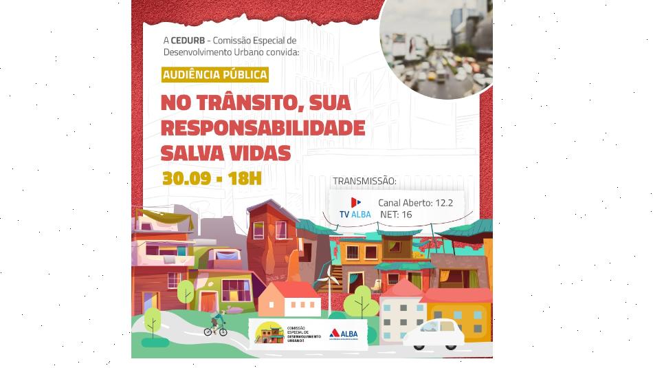 A Comissão de Desenvolvimento Urbano da Assembleia Legislativa da Bahia, realiza nesta quinta-feira (30), às 18h, uma audiência pública com o tema “No trânsito, sua responsabilidade salva vidas”.
