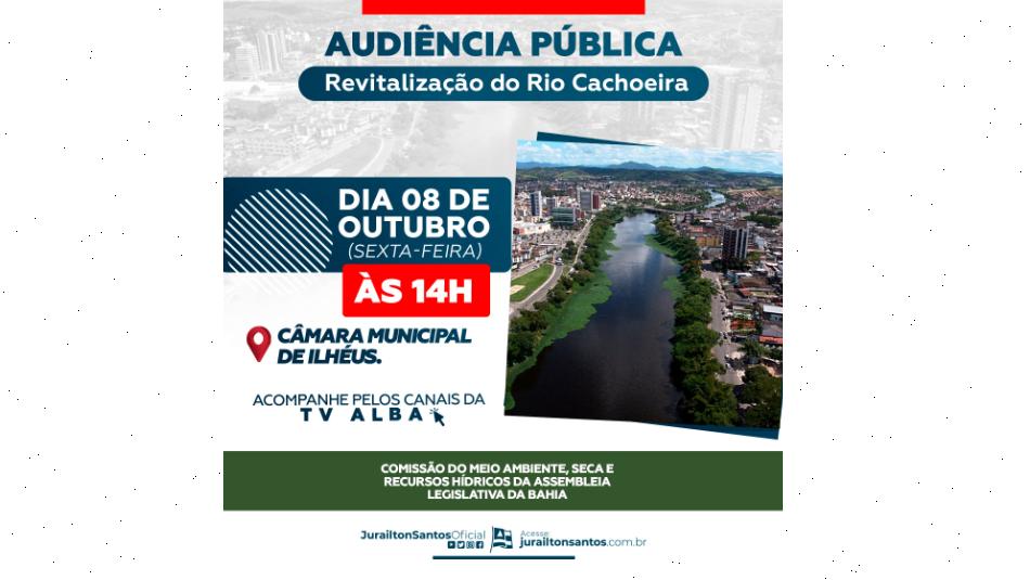 Pensando na preservação do Rio Cachoeira, importante rio do Sul da Bahia, que banha os municípios de Itabuna e Ilhéus, o deputado Jurailton Santos (Republicanos), propôs à Comissão de Meio Ambiente, Seca e Recursos Hídricos da Assembleia Legislativa da Bahia, uma audiência pública, a ser realizada nesta sexta-feira (8), às 14h, na Câmara Municipal de Ilhéus, para discutir a revitalização do rio.