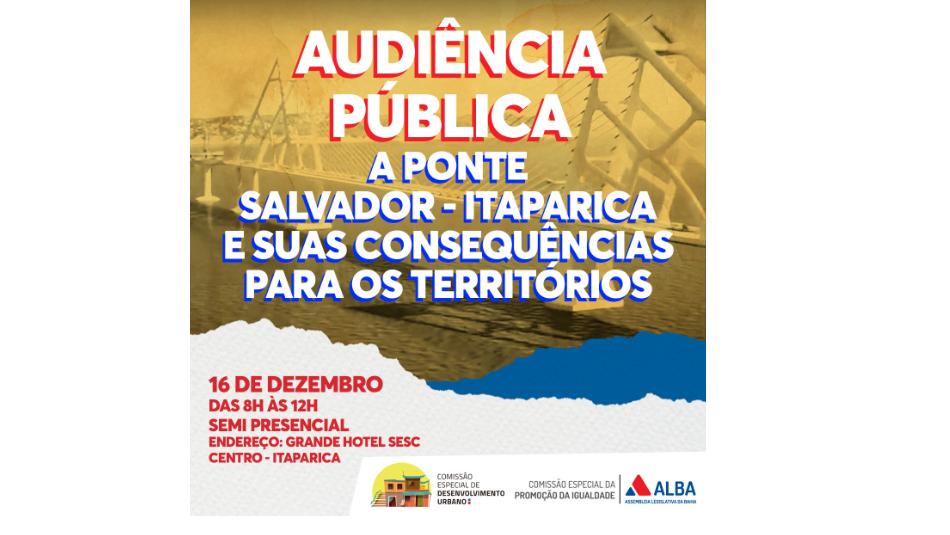 A Comissão Especial de Desenvolvimento Urbano em conjunto com a Comissão Especial da Promoção da Igualdade, presididas respectivamente pelas petistas deputada Maria del Carmen Lula e Fátima Nunes Lula, promovem uma audiência pública semipresencial itinerante, nesta quinta-feira (16), às 8h, para discutir “A Ponte Salvador-Itaparica e suas Consequências para os Territórios”.