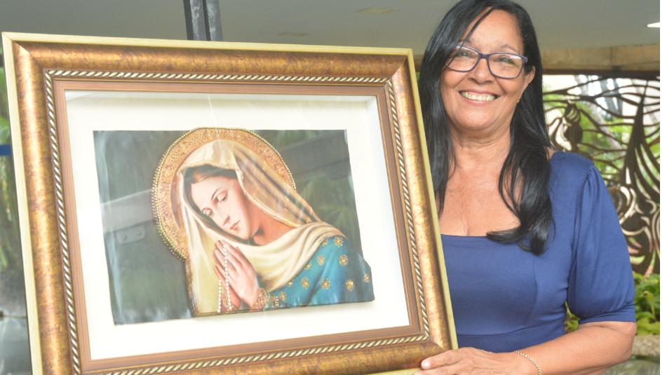 As 13 obras expostas na Assembleia Legislativa são representações de casarios, futebol, orixás e imagens católicas, que variam entre 40cm e 90 cm, com valores oscilando entre R$ 350,00 e R$950,00. Após a seleção da imagem, Zel as recorta, cola uma sobre a outra, num trabalho que dura de dois a cinco dias a depender da complexidade do quadro a ser montado. Após este trabalho meticuloso e artesanal, ela leva a peça para emoldurar. “É o que encarece o quadro”, informa a artista.