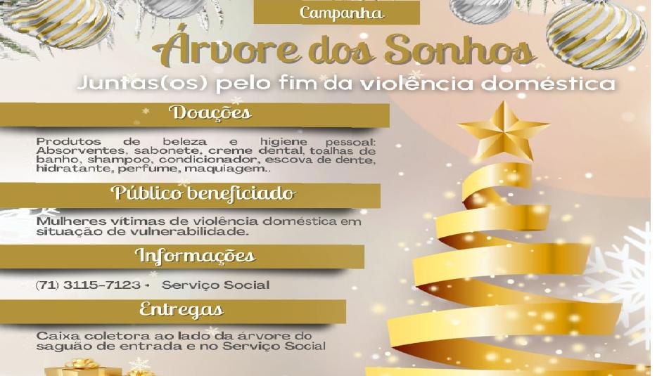 A Confraternização de Natal na Assembleia Legislativa será realizada nesta quinta-feira (15), a partir das 17 h, na Praça David Lavigne, com o lançamento da Campanha Árvore dos Sonhos. Com o tema “Juntos pelo fim da violência doméstica”, a iniciativa pretende arrecadar produtos de beleza e higiene pessoal que serão doados para mulheres vítimas de violência doméstica em situação de vulnerabilidade.