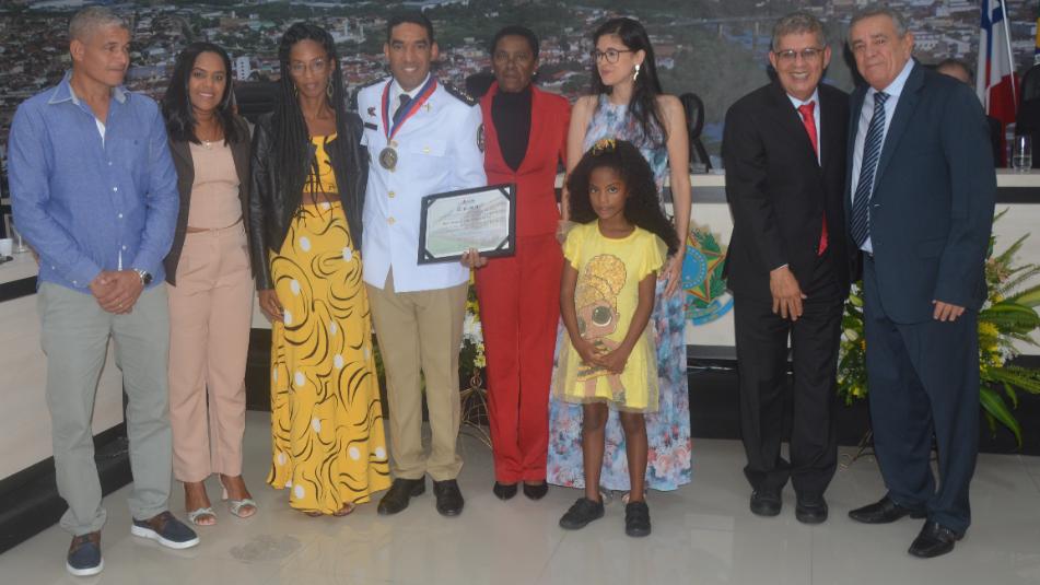 A solenidade foi duplamente especial para o major da Polícia Militar, João Henrique Rebouças da Cruz. Além de receber a Comenda 2 de Julho das mãos do deputado Euclides Fernandes, ele foi agraciado com o Título de Cidadão Jequieense, proposto pelo vereador Ramon Fernandes.