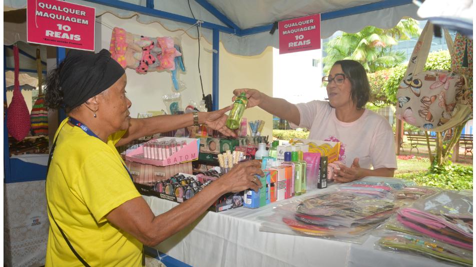 Uma das expositoras, Míriam Castro, informou que o estande traz produtos artesanais, como bordados, resgatando técnicas antigas, e artigos de saboaria, feita com óleos vegetais.