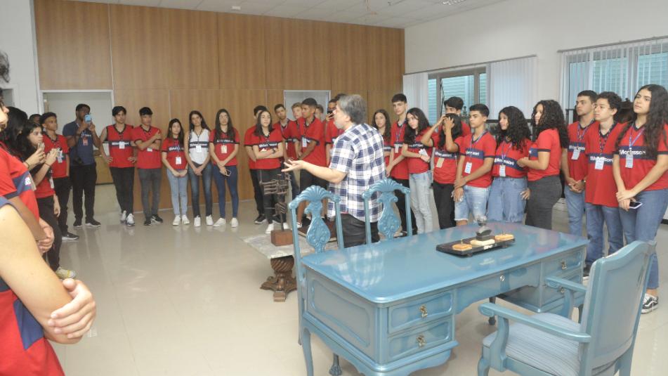 Numa espécie de aula de campo, os estudantes puderam vivenciar de perto a estrutura que mantém as engrenagens do Poder Legislativo em movimento, expandindo o conhecimento adquirido em sala de aula sobre assuntos como a separação dos poderes e a criação das leis.