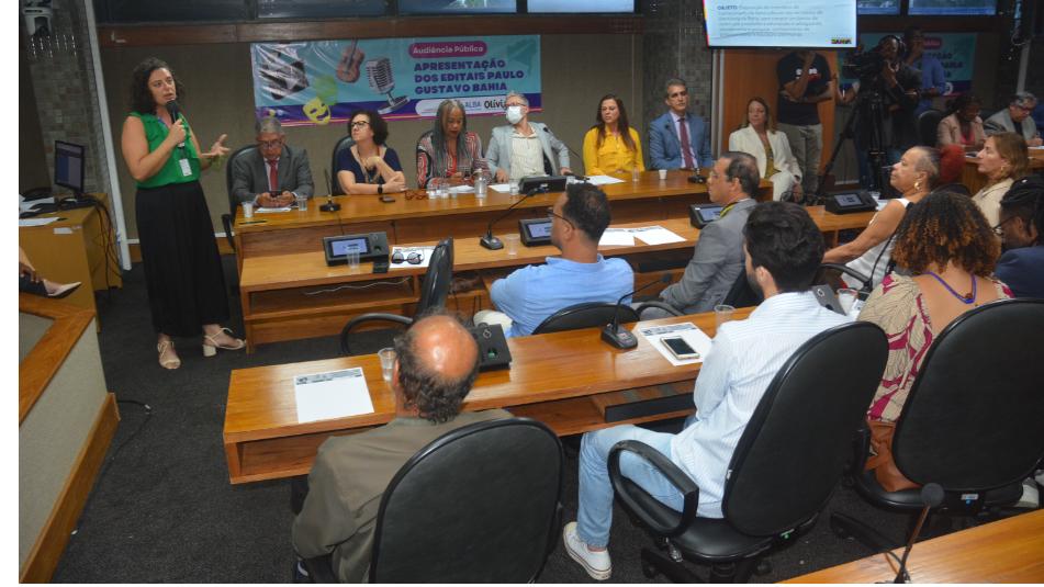 Os editais da Lei Paulo Gustavo Bahia (PGBA) lançados pela Secretaria de Cultural da Bahia (Secult) foram discutidos durante audiência pública promovida pela Comissão de Educação, Cultura, Ciência e Tecnologia e Serviços Público da ALBA na manhã desta terça (10). Os debates giraram em torno da legislação apresentada à população baiana e as especificidades técnicas dos 26 editais que vão distribuir cerca de R$ 150 milhões em recursos nos 27 territórios de identidade da Bahia.