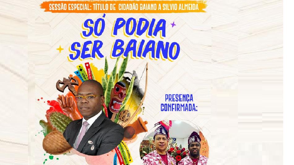 O ministro dos Direitos Humanos e da Cidadania, o professor, advogado, filósofo e militante do movimento negro Silvio Luiz de Almeida, recebe o título de Cidadão Baiano, nesta sexta-feira (20), às 9 h, em sessão especial no plenário da Assembleia Legislativa da Bahia (ALBA). O proponente da honraria é o deputado Hilton Coelho (PSol), que destaca, entre outras, as contribuições teóricas do homenageado como “valiosas para um Estado como a Bahia, com 23% de sua população se autodeclarando preta e 58% se afirmando parda, conformando mais de 80% da população como negra”.