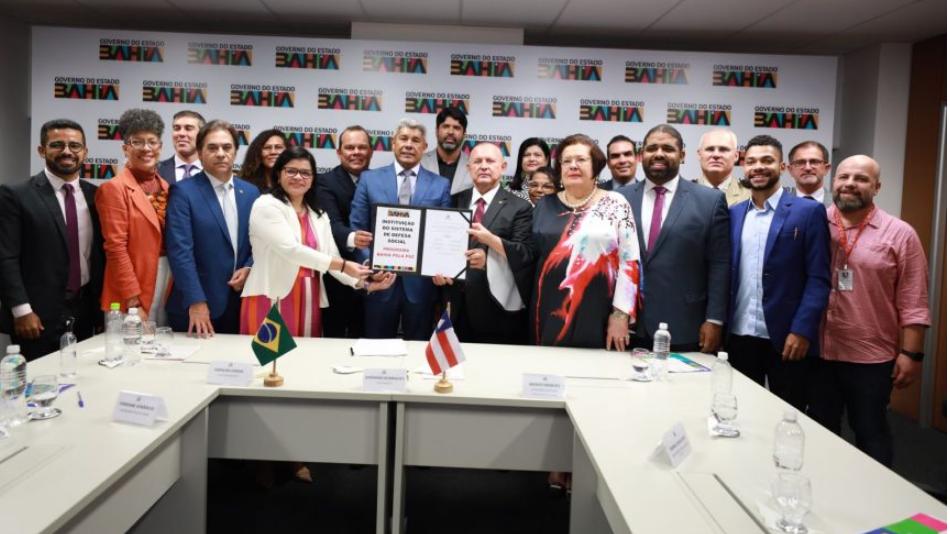 O governador da Bahia disse ainda que o programa Bahia Pela Paz é resultado de um trabalho conjunto do Poder Executivo, Assembleia Legislativa, Ministério Público Estadual, Defensoria e que envolve praticamente todas as secretarias de Estado, especialmente as de Segurança Pública, Ação Social, de Política para as Mulheres, Igualdade Racial, Justiça e Direitos Humanos, sob a coordenação dessa última que foi determinante na formulação do projeto encaminhado para deliberação no Legislativo.