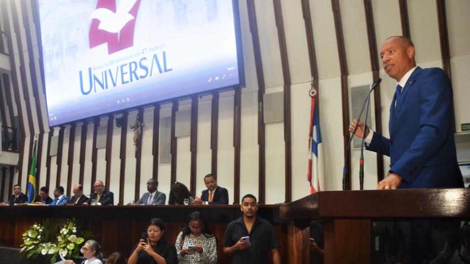 A Assembleia Legislativa da Bahia, no primeiro dia de funcionamento após o recesso parlamentar de julho, comemorou, em sessão especial realizada nesta quinta-feira (1), no Plenário Orlando Spínola, os 47 anos da Igreja Universal do Reino de Deus (Iurd). Proposta pelo deputado Jurailton Santos (Republicanos), a homenagem contou com bispos, pastores e obreiros. Fundada em 9 de julho de 1977 pelo bispo Edir Macedo, em quase meio século de existência, a instituição só fez crescer e se multiplicar, levando uma mensagem de fé para milhões de pessoas nos cinco continentes.