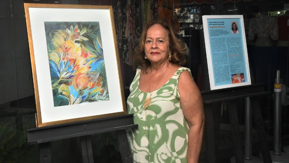 E a aquarela acabou se tornando a sua grande paixão. Na ALBA, por exemplo, a maioria das obras expostas é feita com essa técnica. Angélica explica que a inspiração para a sua produção artística vem da natureza. “O tema que eu mais trabalho é a natureza, principalmente as flores. O que mais me encanta é esse contato com a natureza”, relatou.
