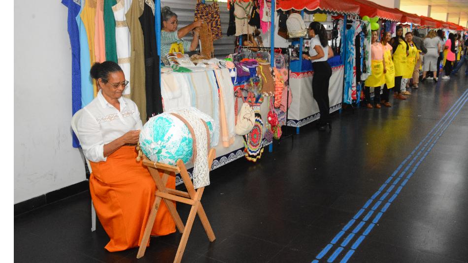 Em outra barraca, a artesã Marcia Brito expõe os trabalhos em bordado e crochê feitos pela mãe, com quem aprendeu o ofício. São blusas, casacos, shorts, saias infantis em crochê, bonecas de pano, panos de prato bordados e chaveiros. “A gente tem um preço muito bom. O orçamento é feito dentro daquilo para que a gente não perca e não fique tão pesado para o cliente porque, assim como queremos vender, o cliente quer comprar”, afirmou.