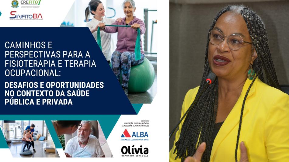 A Comissão de Educação, Cultura, Ciência e Tecnologia e Serviços Públicos da Assembleia Legislativa da Bahia, presidida pela deputada Olívia Santana (PC do B), promove, nesta quarta-feira (9), a partir das 9h, na sala destinada a reunião das comisões técnicas da Casa, uma audiência pública para debater “Os Caminhos e Perspectivas para a Fisioterapia e a Terapia Ocupacional: Desafios e Oportunidades no Contexto da Saúde Pública e Privada”.