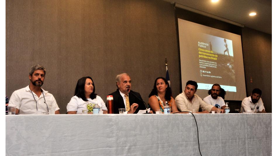 Contribuíram paras as discussões o engenheiro em Administração Marítima do Chile, Sebastião Herrera Kasic, além da médica sanitarista e diretora da Vigilância e Atenção à Saúde do Trabalhador da Sesab, Letícia Coelho da Costa Nobre. Em nome das comunidades pesqueiras fizeram pronunciamentos, solicitando Reparação Já, o ex-presidente do Conselho Nacional de Povos e Comunidades Tradicionais, Carlos Alberto Santos, o Carlinhos; o representante do Movimento Pescadores e Pescadoras Artesanais (MPP), Gileno Nascimento da Conceição; e a dirigente dos Movimentos Mar de Luta e Nenhum Poço a Mais, Maria José Pacheco, a Zezé. A vereadora Suilan da Pesca, do município de Ituberá, e Bruno Falcão, representando a Bahia Pesca, compuseram a mesa dos trabalhos da audiência, conduzida pelo deputado Marcelino Galo, que se comprometeu em encaminhar as propostas para as autoridades governamentais.