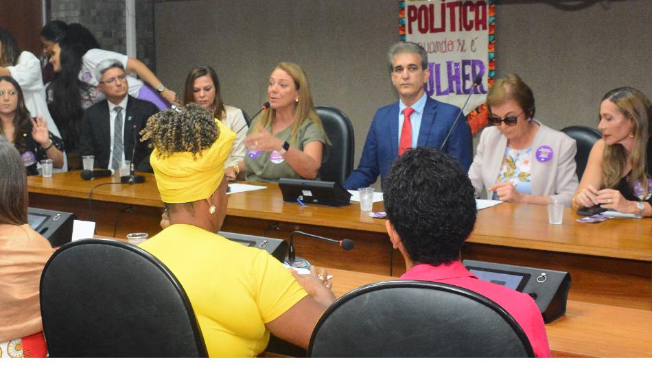 Além do presidente da CCJ, deputado Robinson Almeida (PT), e das proponentes da audiência, compuseram a mesa a presidente da Comissão dos Direitos da Mulher, deputada Soane Galvão (PSB); as deputadas Fátima Nunes (PT) e Ludmilla Fiscina (PV); a procuradora-adjunta da procuradoria especial da Casa, deputada Cláudia Oliveira (PSD); a delegada-geral de Polícia Civil da Bahia, Heloísa Brito; o representante da Secretaria de Segurança Pública (SSP), Nelson Gaspar; o procurador regional eleitoral auxiliar da Procuradoria Regional Eleitoral, Cláudio Gusmão; a defensora pública coordenadora do Núcleo de Atuação Estratégica da Defensoria Pública, Cristina Ulm Ferreira; e a professora Bárbara Coelho, do Instituto de Ciências da Informação da Ufba e dirigente da Apub-Sindicato.