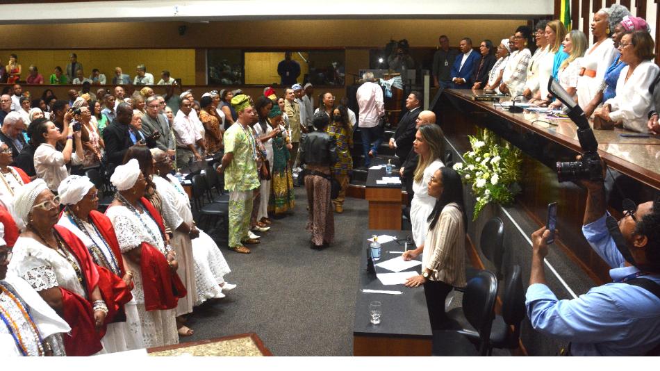 O Plenário Orlando Spínola foi tomado por diferentes cores dos trajes religiosos, dos sacerdotes e sacerdotisas, com seus ojás, filás,alakás e xocotôs e a riqueza de representações, na plateia, foi tamanha, que as proponentes se desculparam em não ter como contemplá-las com assento na mesa. Para a presidente Ivana Bastos, Mãe Stella deixa um legado de força e ensinamento como “uma voz que ultrapassou os muros dos terreiros para dialogar com a sociedade, com a educação, com o serviço público, com a espiritualidade ecom a cultura de forma ampla e generosa”.