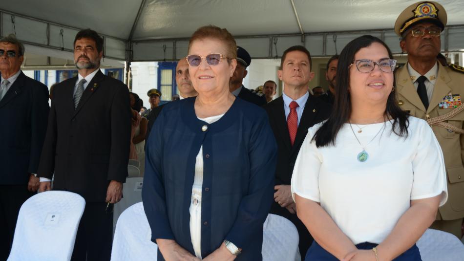 A deputada Fátima Nunes (PT), primeira vice-presidente da Assembleia Legislativa da Bahia (ALBA), representou o Parlamento estadual na manhã desta quarta-feira (11), na cerimônia militar alusiva ao Dia da Marinha do Brasil, historicamente celebrado em 11 de junho. Para a parlamentar, a ocasião é uma oportunidade de homenagear os guardiões da costa marítima. “A nossa costa da Bahia é extensa. A Bahia é um ponto central do nosso Nordeste, que interliga todo o nosso país com outros países do outro lado do Oceano Atlântico e, portanto, celebrar a Marinha é desenvolver no nosso coração esse sentimento de gratidão por podermos contar com esses guerreiros e guerreiras que todos os dias enfrentam a desafios diversos e cuidam dos povos que trabalham nos mares”, afirmou.