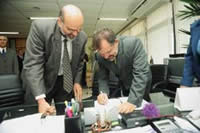 Numa solenidade rápida e simples no gabinete da presidência, a Assembléia Legislativa firmou convênio, ontem, com o Instituto de Radiodifusão Educativa da Bahia – Irdeb, para patrocinar a realização de um curta-metragem dentro da programação DOC- TV Bahia. Este é um evento produzido pelo Ministério da Cultura difundido em todos os estados e destinado a fomentar a produção nacional audiovisual.