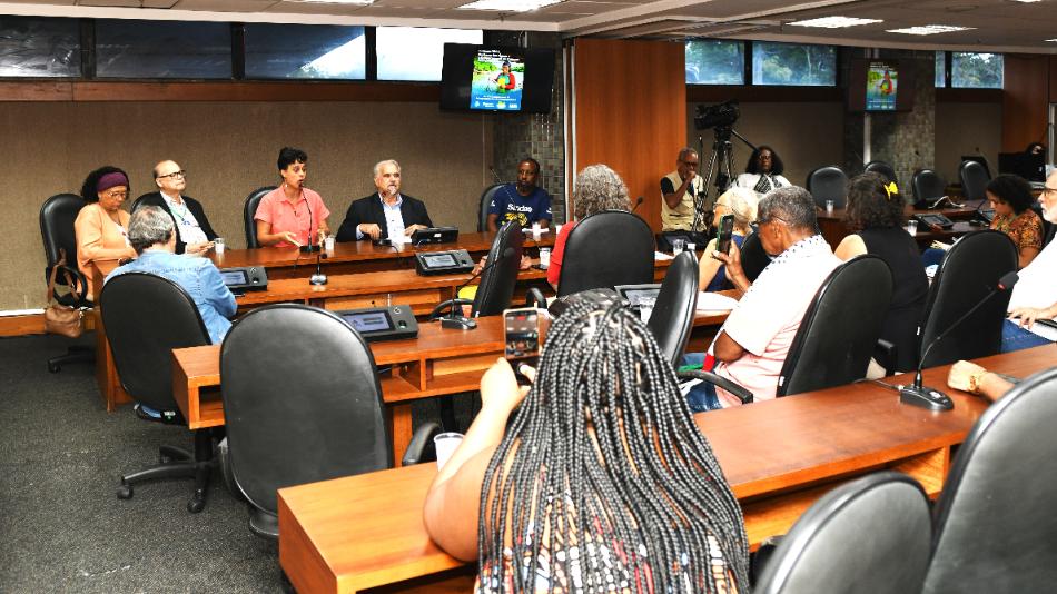 A mesa dos trabalhos foi composta pelo deputado Marcelino Galo, pela vereadora Marta Rodrigues, por Margareth Maia, diretora da ONG Instituto Mãos da Terra (Imaterra), com participação online; Gesiani Santos, coordenadora da Rede de Mulheres de Comunidades Extrativistas Pesqueiras da Bahia (online); Renata Tupinambá, do Movimento Unido dos Povos e Organizações Indígenas da Bahia (Mupoiba); Eduardo Topázio, do Inema; Joana Nery, da Ascra; e Edmilson Barbosa, do Sindae.