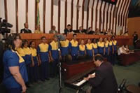 Transformada em especial por acordo de lideranças - todas elas presentes ontem em plenário – a sessão contou com a participação do coral Art’Canto, composto por funcionários da ECT e que abriu os trabalhos, e homenageou Eurico Souza Calazan, monitor telegráfico com 61 anos de empresa.
