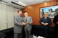 O presidente do TCE e o conselheiro Pedro Henrique Lino falaram um pouco sobre o trabalho desenvolvido por aquela Corte no exame de uma matéria da complexidade da prestação anual governamental, que reúne não só as contas do Poder Executivo, como a dos demais poderes e do Ministério Público, trabalho que envolve todo o corpo técnico do Tribunal. A busca do aperfeiçoamento, asseguraram, é a meta buscada pelos conselheiros e todo o seu corpo funcional, pois esta ação não está voltada apenas para a fiscalização dos gastos públicos, mas busca ainda orientar os gestores e técnicos do serviço público estadual para as melhores técnicas disponíveis para a contabilidade pública em nosso país.